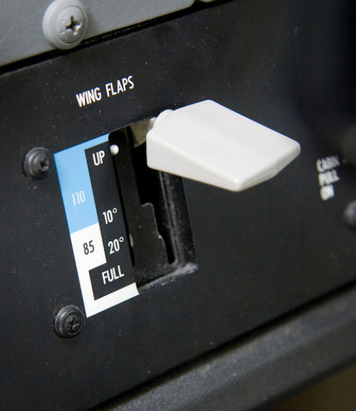 Today, I flew a different airplane - a Cessna C-152. I like it less because there are some more vibrations, control forces are higher, and ground roll is longer than the airplane I used to. However, it has a VOR receiver, its airspeed indicator is in knots instead of mph, and one does not need to hold the flaps lever for some seconds to set flaps to the required position. The flaps switch looks like this: